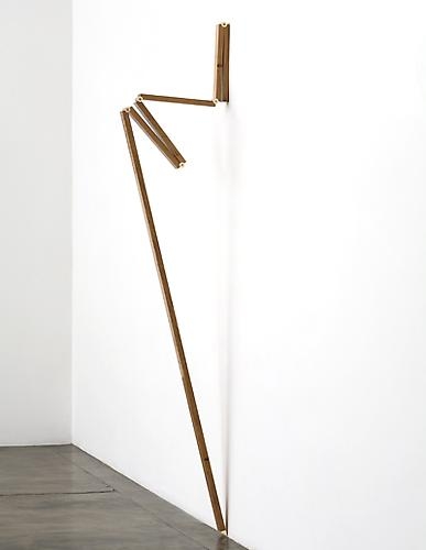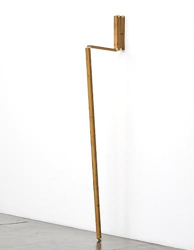 Artur Lescher was born in São Paulo in 1962, where he currently lives and works. Since the 1980s, he has been creating austere, poetic sculptures, objects, and installations through which he investigates the mechanics of form and movement, balance and tension, and architectural spaces. He came to national prominence in his native Brazil in 1987, when he participated in the 19th Bienal de São Paulo with Aerólitos, an installation of two Zeppelin-like balloons set side-by-side, one inside, the other outside of the pavilion’s windowed wall, creating a compelling double image that seemed to dematerialize the architectural feature separating them. Lescher has been playing with the perception of materials and spaces ever since, in works reflecting direct influences from Constructivism, Suprematism, the Brazilian Neo-Concrete movement, Performance Art, and Minimalism. At the heart of all of his work is a focus on perceived boundaries—between, for example, reality and its representation—which he continuously breaks down.
