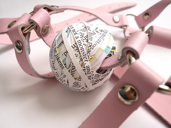 , detail, 2011, cut paper, leather straps, 5 x 10 x 2 inches
